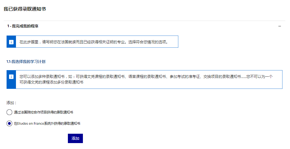 第三步:选择“在Etudes en France系统外获得的录取通知书”