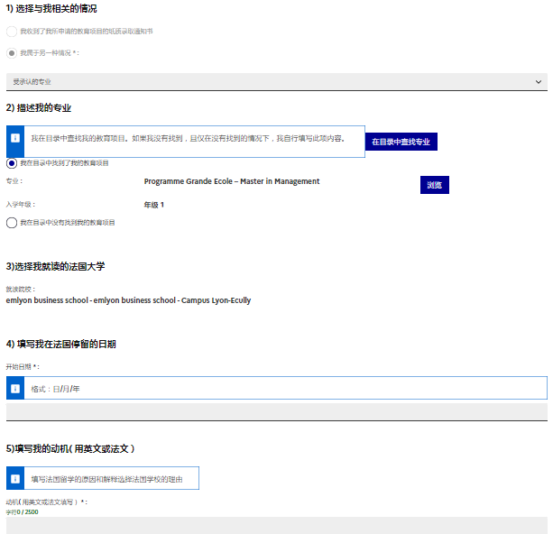 第五步:填写enrollment letter上对应的项目时间,并用英语或法语填写留学动机(需要和签证面试对应,请务必认真填写):