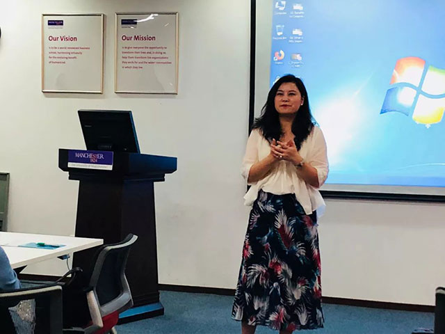 随后,曼彻斯特全球在职MBA项目的另一位学员Sylvia也同大家分享了自己的在职学习感受。Sylvia在拜尔中国拥有超过10年的工作管理经验,在公司品牌传播,新媒体营销以及企业公关等领域积累了丰富的管理经验。