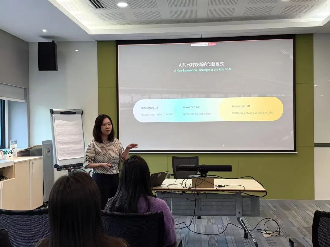 张婕女士(上海创新创意设计研究院战略发展总监、运营负责人及战略顾问委员会秘书长)分享了上海创新创意设计研究院作为"世界级设计驱动式创新转化引擎"的独特定位,她介绍了"科技+设计+商业"跨学科生态如何帮助科技企业跨越转化"死亡谷",并重点展示了D.Transformer在AI+ESG等前沿领域的创新加速实践。