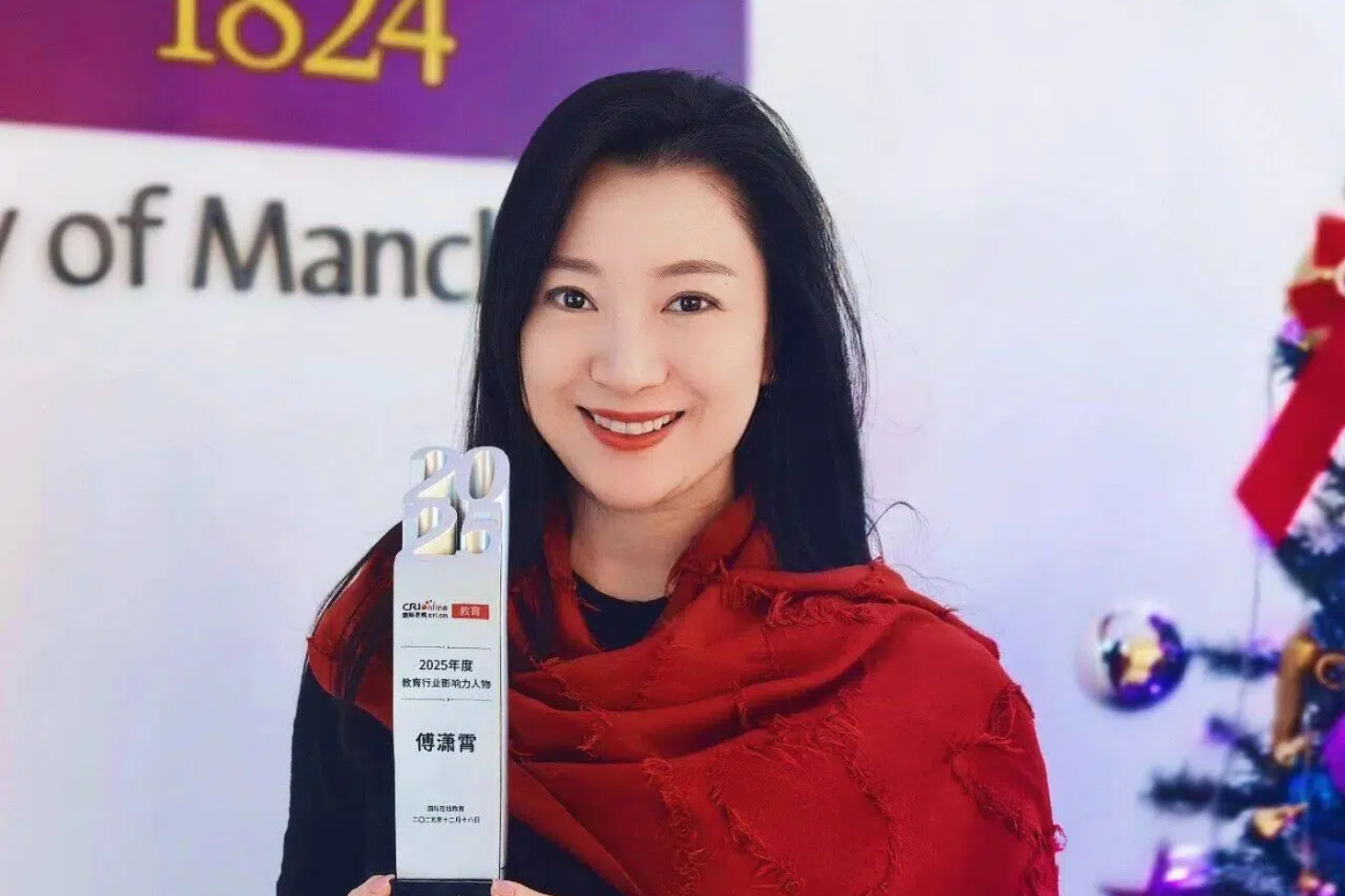 在日前举行的2025年中央广电总台国际在线教育大会上,曼彻斯特大学中国中心荣获“年度品牌影响力EMBA项目”大奖,同时傅潇霄女士获颁“年度教育行业影响力人物”称号。
